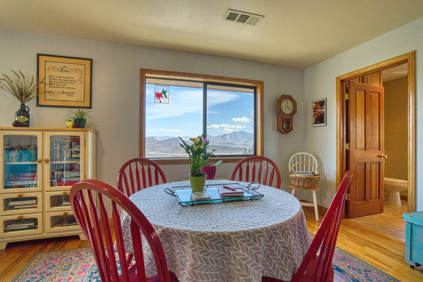 Gorgeous view from the table and the bathroom. Very comfortable and clean. David and Nancy are both terrific people who live right next door and are very communicative.